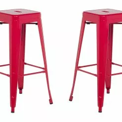 Este conjunto de 2 sillas de bar combina bien en cualquier comedor moderno o industrial. Está fabricado a partir de metal con recubrimiento en polvo. Las barras horizontales sirven como reposapiés. Los protectores para las patas evitan que se dañe el piso. Ideal para cocina, comedor, baño u oficina.