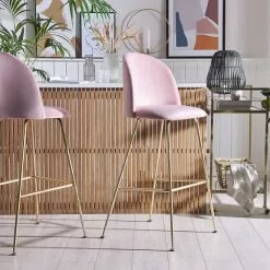 Beliani Conjunto De 2 Sillas De Bar De Terciopelo Rosa/dorado ARCOLA